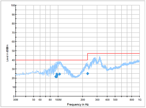 TIPS:整改過程中,可以借助磁環(huán)/頻譜儀(近場掃描)/暗室等工具進行模塊化分析.在確定問題過程中應(yīng)該關(guān)注數(shù)據(jù)的整體變化趨勢,而不是只關(guān)注某個頻點的數(shù)值變化.通過對比前后狀態(tài)數(shù)據(jù)綜合定位問題。
