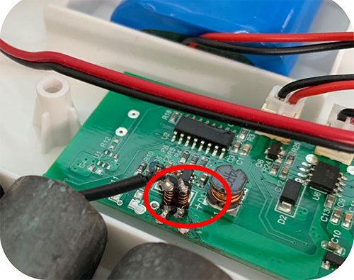 下一步對單獨零部件分析,可通過頻譜儀或者暗室單獨測試產(chǎn)品DCDC(掛負載)\電機通電\驅(qū)動掛負載 ,發(fā)現(xiàn)電機驅(qū)動部分影響比較大,所以在電機輸出線加磁環(huán)驗證有效,但是考慮到要大批量生產(chǎn)和保證產(chǎn)品一致性,使用共模電感在PCB板上做濾波,初步手工測試有效,后期需改板再次驗證。