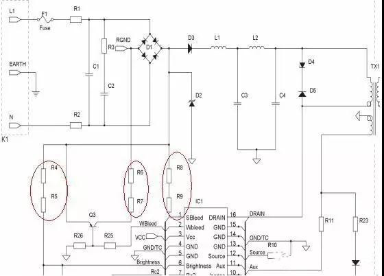 這種電路涉及到電阻兩個容易被大家忽略的參數(shù)“耐壓值”和“工作電壓”,電阻除了阻值、額定功率外,還有兩個重要參數(shù)是耐壓值和工作電壓,比如常見的1/4W插件電阻,通常耐壓值是500V、工作電壓為250V。